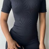 Enterizo deportivo corto de manga corta, ideal para entrenamientos intensos o actividades al aire libre. Su diseño ajustado y ligero permite máxima libertad de movimiento, mientras que su tela transpirable garantiza comodidad durante todo el día.
